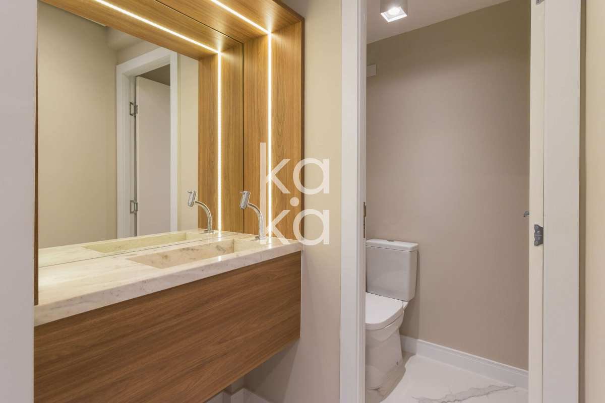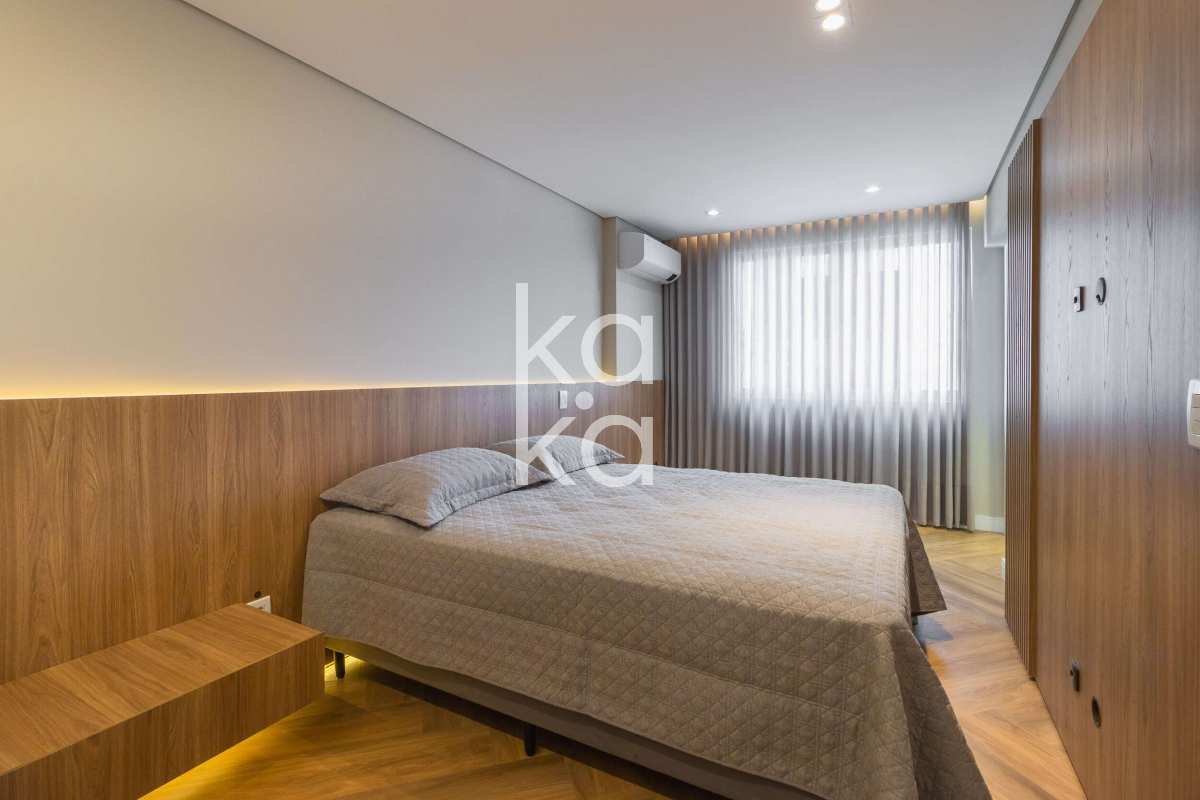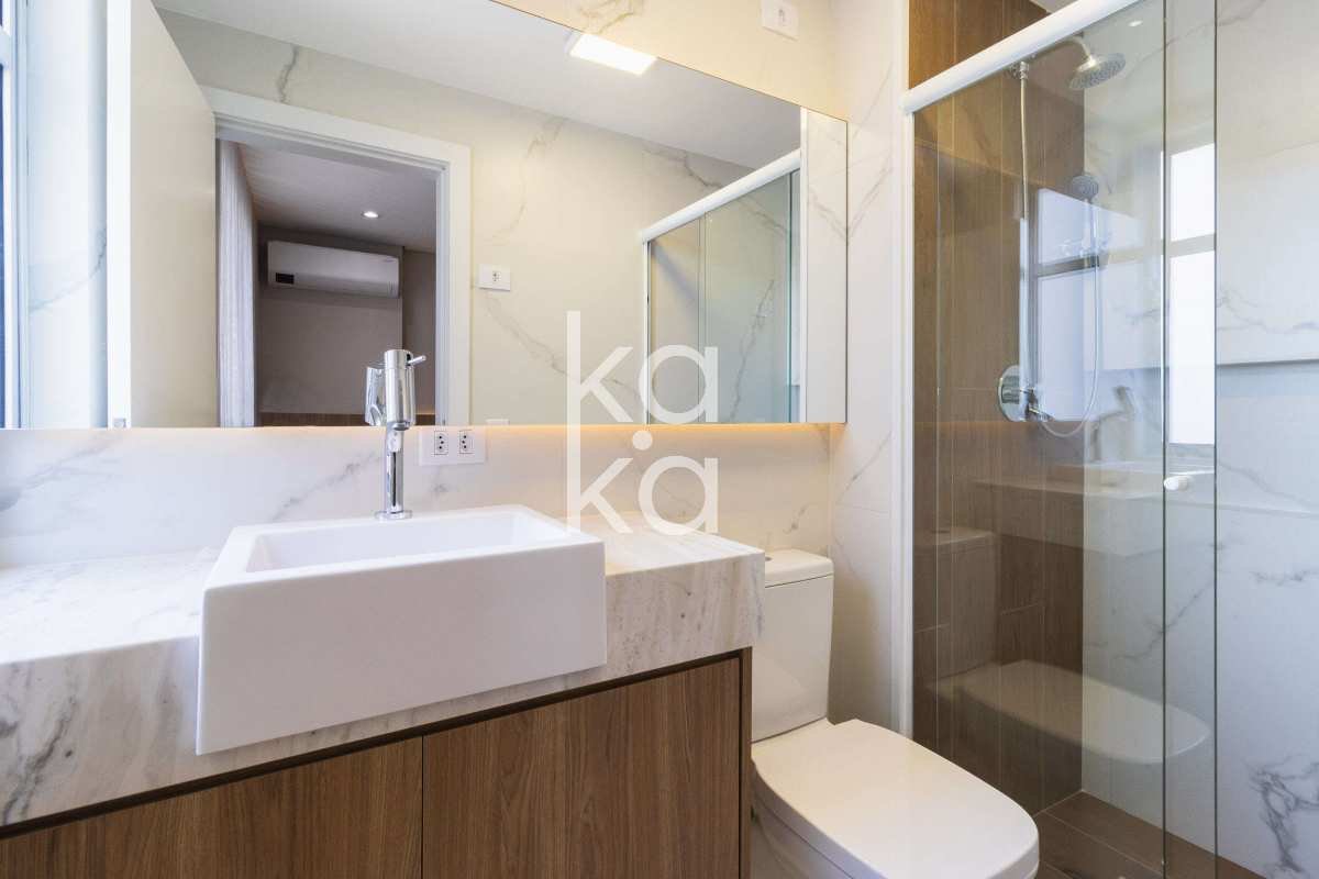 Novo layout, janelas e portas trocadas, piso vinílico e porcelanato, iluminação embutida em LED, tampos em mármore Paraná e ar-condicionado Inverter nas suítes. Fechadura biométrica e detalhes que combinam conforto e segurança.